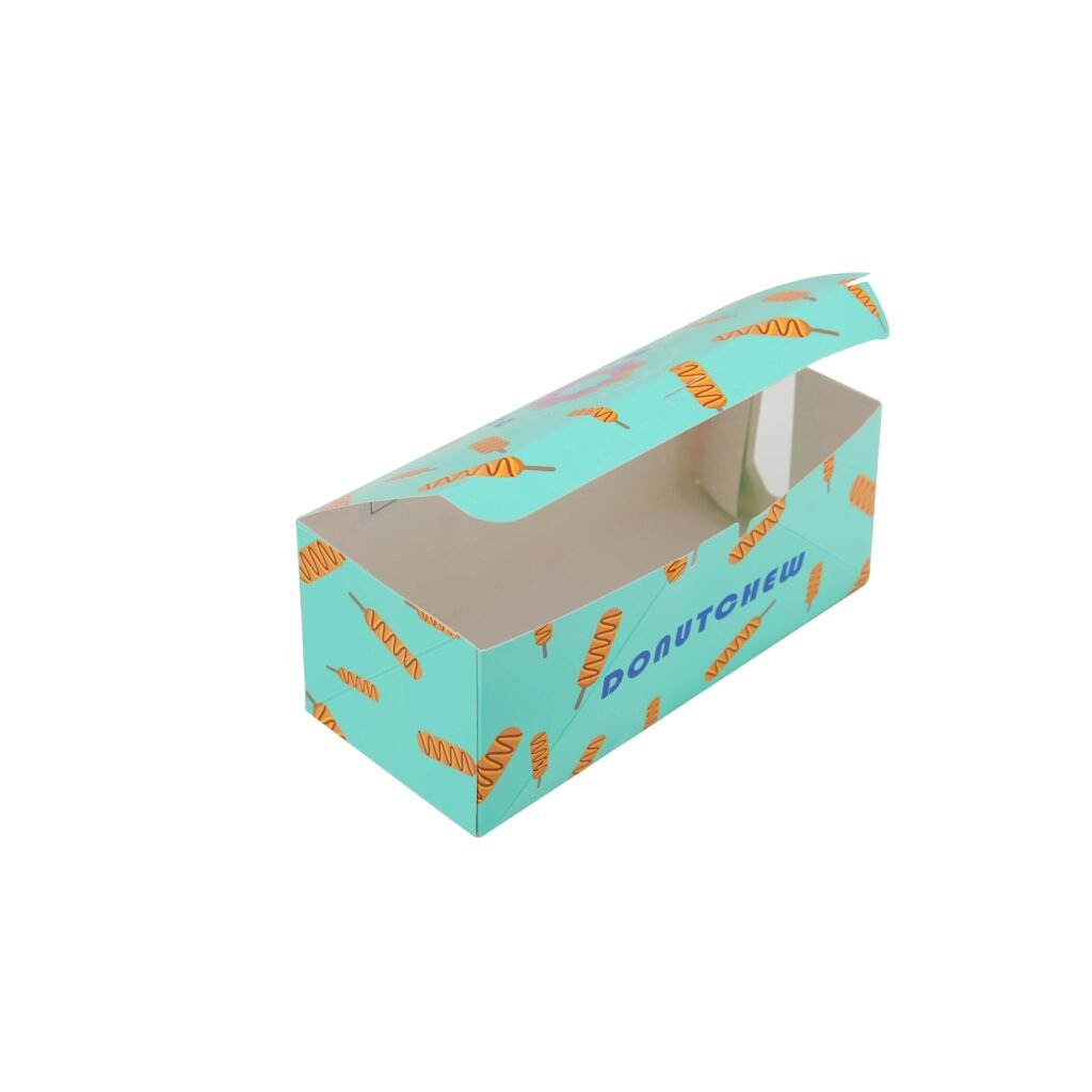 Customized corndog boxes paper box with client’s logo and design.